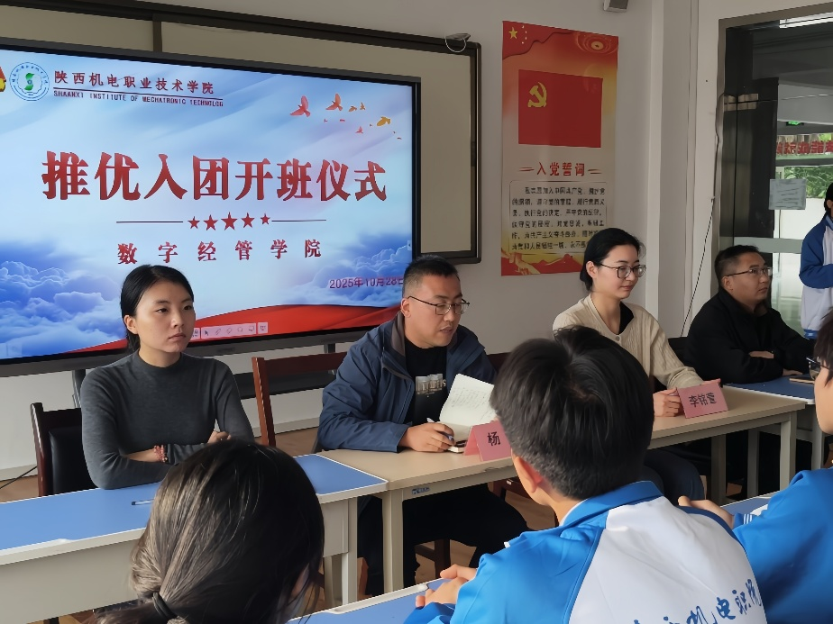 为进一步加强团员队伍建设,提升团员思想政治素质,规范团员发展工作,数字经管学院团总支于2025年10月28日16:00在电子信息大楼2207举行了2025年下半年团员发展培训开班仪式。数字经管学院团总支书记杨涛、团总支副书记李铭萱、团总支兼职副书记曹朋伟、专职辅导员赵家瑶及全体入团积极分子齐聚一堂,共同开启了此次意义非凡的培训之旅。