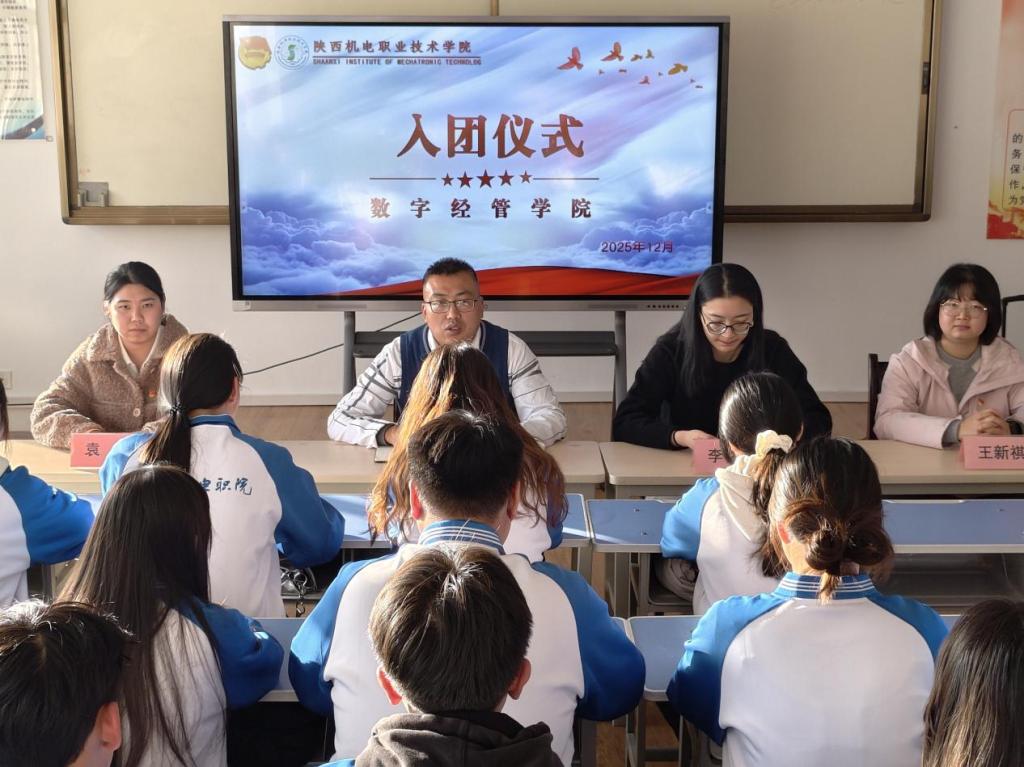 为进一步增强共青团组织力量,提升团员的光荣感与使命感。2025年12月16日下午,数字经管学院2025年下半年新团员入团仪式于电子信息大楼2207会议室隆重举行。学院团总支书记杨涛、副书记李铭萱、兼职副书记王新祺、学工办干事袁甜出席本次仪式,与全体新团员共同见证这一庄严时刻。