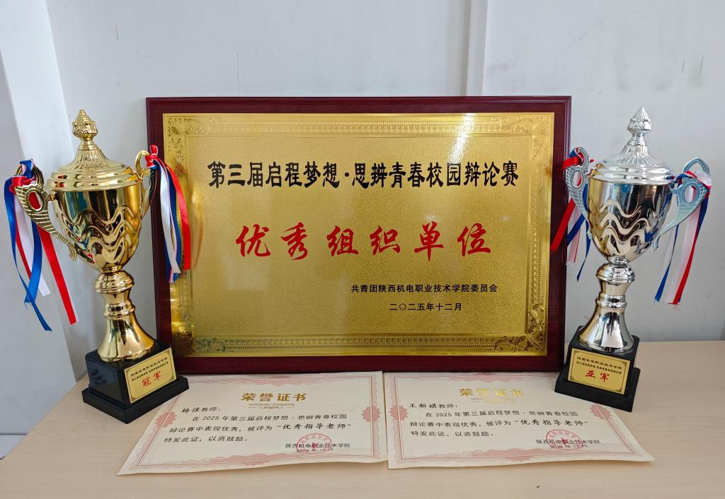 近日,陕西机电职业技术学院辩论赛决赛暨颁奖典礼于2025年12月24日在蟠龙校区博学楼111视频会议室举行,我院斩获佳绩。