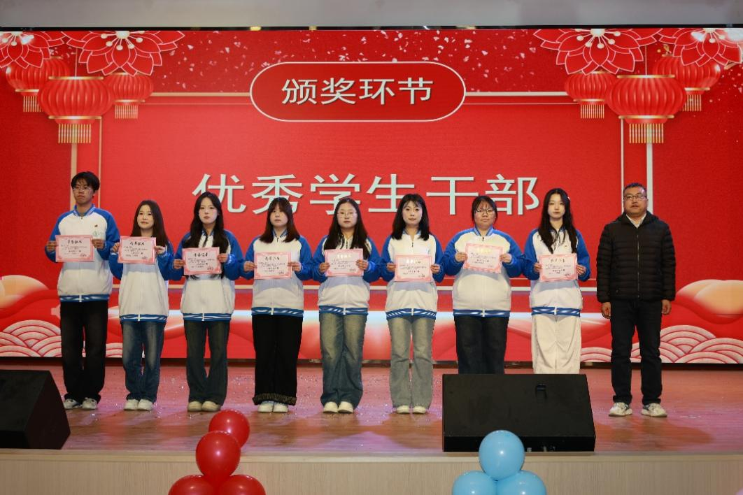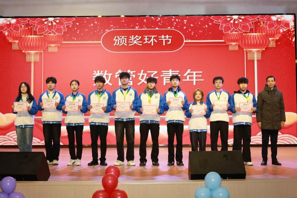 晚会设置四轮颁奖环节,旨在表彰先进、树立榜样,激发全体学子的进取精神。在第一轮“数管好青年”颁奖中,刘瑞芝、靳雨婷等30名同学代表依次上台,学院党支部书记、副院长孟发军为获奖学生颁发荣誉证书并合影留念。